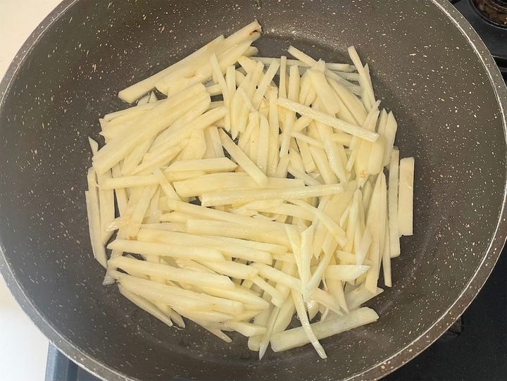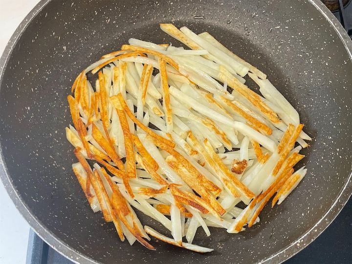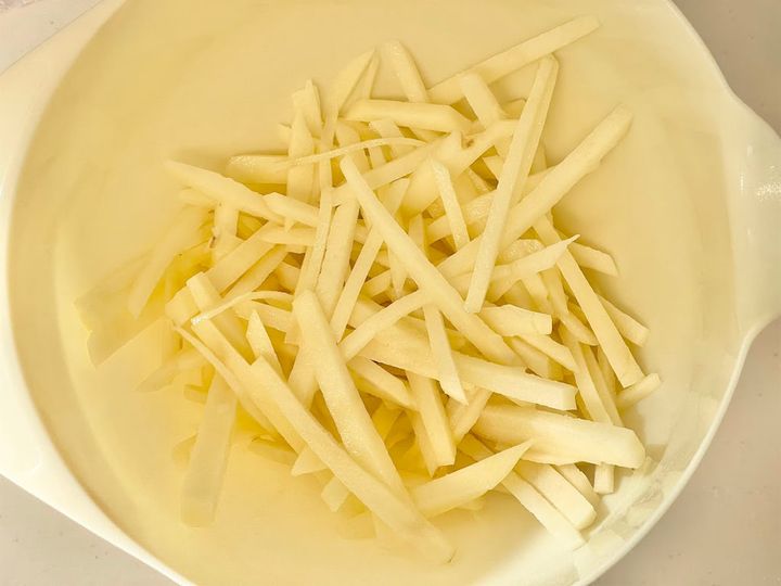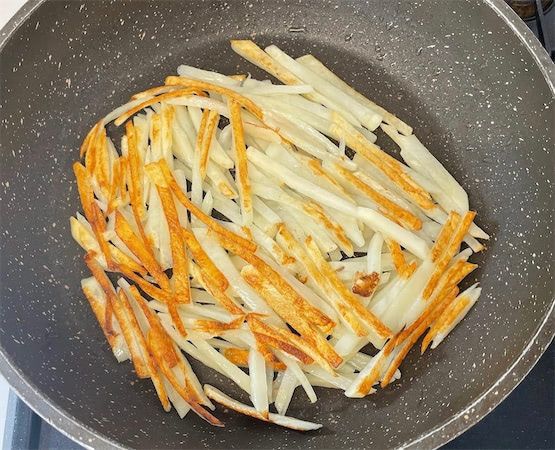 また、じゃがいもの千切りはもっと細切りでよかったかも。