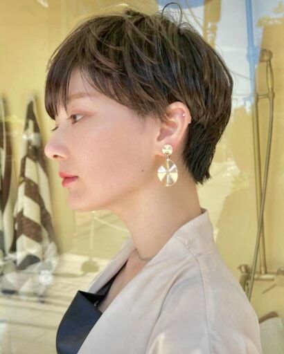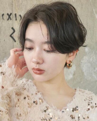 黒髪or暗髪のショートは「少年っぽくなりすぎる?」とイメージしてしまいますが、全体をタイトにまとめたり、長めに前髪を作って流したりなど、柔らかさや目元印象を強調することで、女っぽさや大人感をキープできます。また、髪流れをきれいに見せたり、毛先にニュアンスを出したりするのもおすすめです。