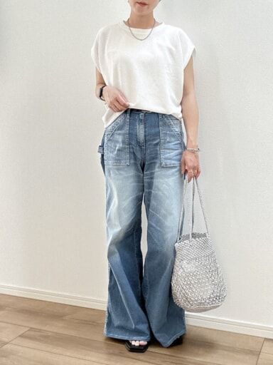 これからの季節に出番多めになるデニムとのワンツースタイル。シンプルだからこそ、トップスとのバランスや小物使いなどでおしゃれを底上げしましょう。