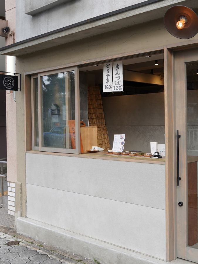 あんこ好きの店主が、あんこで何かできないかと考えているときに、ひらめいたのがきんつばでした。「アレンジしたらおもしろいかも」と、いろいろと作ってみて、マルシェで販売したら人気に。それが、お店を開くきっかけになりました。見つけた店舗は、近くに阿倍野神社や安倍晴明神社がある阿倍野エリアで、「賑やかすぎず、地元密着のローカルな場所」。ここが気に入って、2022年11月にテイクアウトのみの小さなきんつば屋さんをオープンしました。