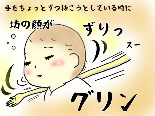 手をちょっとずつ抜こうとしている時に、坊の顔が・・・