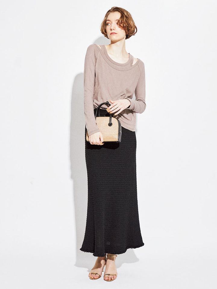 服装も軽量化しはじめ、色みや素材による重厚感も気になる今の時期の服選び。重たさのある黒なのに、シルエットや素材の風合いのおかげで軽やかに、スタイルもよく見える1枚をレコメンド。