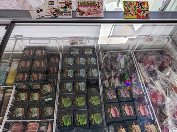 ここ数年大人気のりんご飴もありました。マカロンは、豊富なフレーバーの中から、好きなものだけを選べるのが嬉しいです。