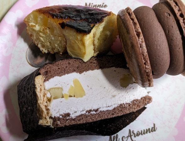 今回は、新商品コーナーから京都の「クレームブリュレドーナッツ」、人気コーナーから大阪の「おにぎりケーキ 栗」と東京の「太っちょマカロン」を試食させていただきました。