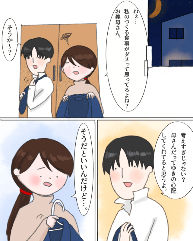 「ねぇ・・私のつくる食事がダメって思てるよね・・お義母さん」