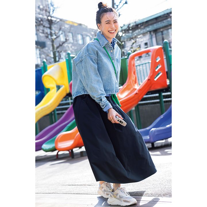 ボトムスを選ばなくて万能すぎる…「デニムジャケット×スカート」着こなし