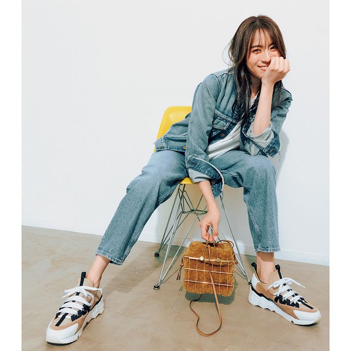 Gジャンにデニムの組み合わせで こなれ感のあるカジュアルに。 バッグ&スニーカーで新鮮さを
