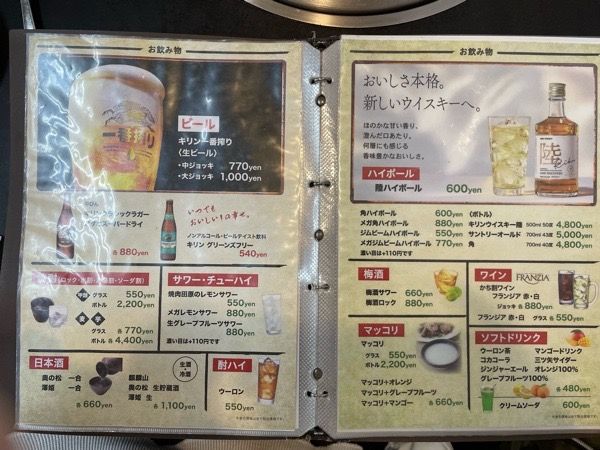 焼き肉と言えばアルコールも欠かせないですね。アルコールメニューも沢山ありました。