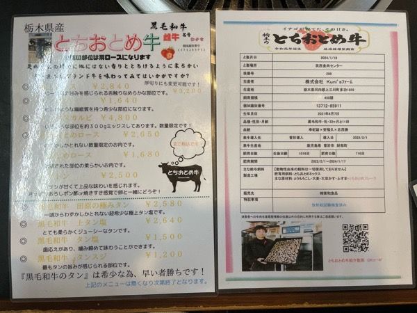 また別の日も、「とちおとめ牛」が食べたくなり来店した際は、品切れで食べれないことがありました。貴重なブランド牛だけあり、数が少ないのかもしれないので、タイミングも大事。