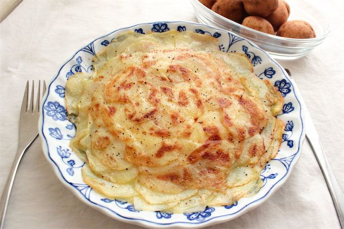 薄切りじゃがいもを重ねると繊細で軽やかな食べ心地のガレットに