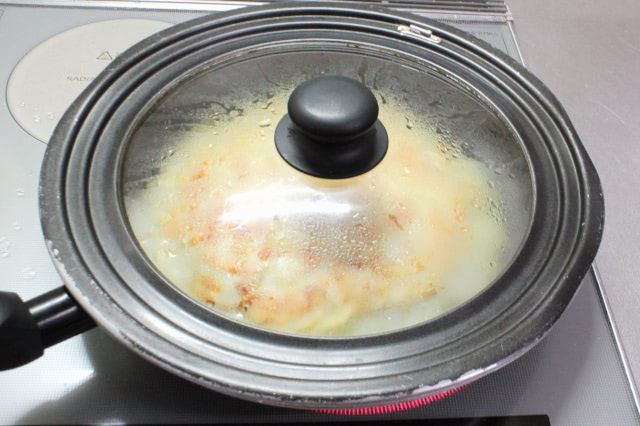 5.ひっくり返して反対の面を3~4分蒸し焼きにします。