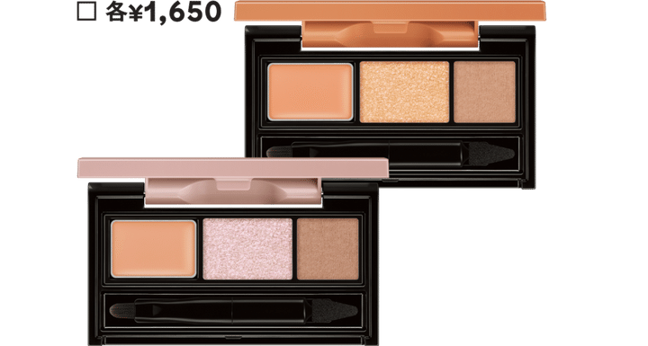 【ケイト▶涙袋を“偽装”する新パレット!】ぷっくりしていてリアルな涙袋を演出するためのコンシーラー・影色・グリッターをひとつに。上から:ケイト アンダーアイファインダー OR-1、同 PK-1 各¥1,650(共にカネボウ化粧品・限定発売)※価格は編集部調べ