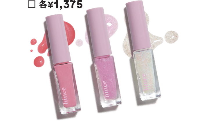 H ピンク系だとhinceのネイルにもキュンときた♥ 甘々に見えるS001は肌になじむし、他の2色はホログラム入りのシアー系で手元がパッと明るくなる。もうね、プチプラの進化がスゴ過ぎて……。