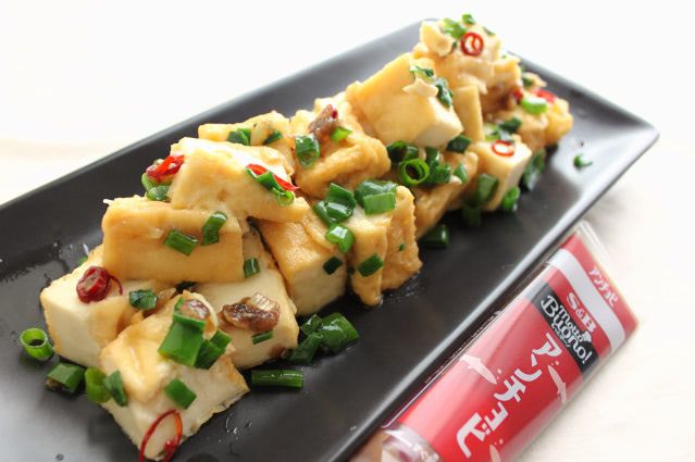 厚揚げを口の中に入れると、にんにくとアンチョビの風味が広がってイタリアンな味わい!後から唐辛子のピリッとした辛さが追いかけてきます。