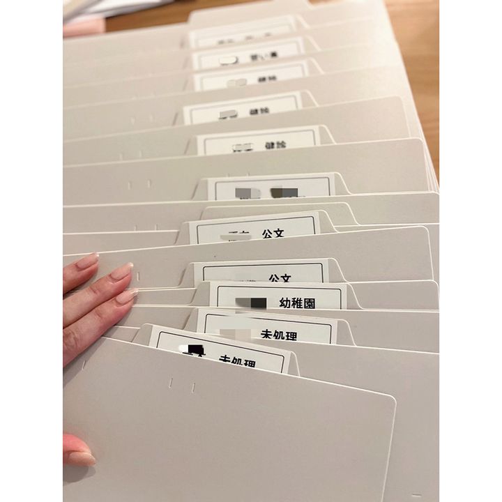 この春、長女が小学生になるので入学準備のプリントがすでに大量。習い事や下の子の通う園も紙ベース。デジタル化していくのはキリがないのが現状で、ピンタレストで見つけた家族ごとのインデックス収納法を取り入れています。Amazonで購入したA3サイズのファイルが全員分の書類を管理するのに大きくて便利で3年ほど愛用中。学年が上がって要領を摑めたらデジタル管理も取り入れていきたいです!