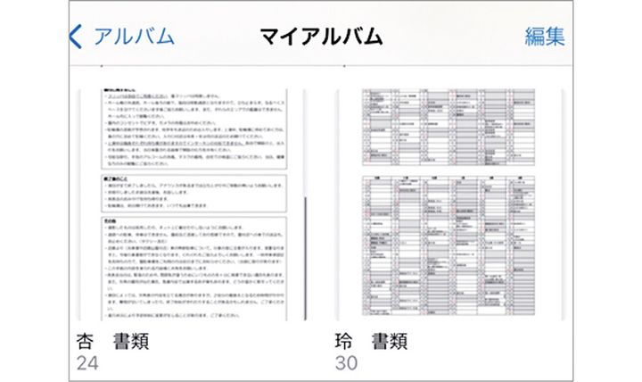 我が家は小学校・幼稚園・保育園すべてがアプリでの連絡なので完全デジタル管理に。見返したいものだけiPhoneの写真フォルダに子ども3人のアルバムを作って保存。それぞれのアプリを開く手間を省けるようにしています。