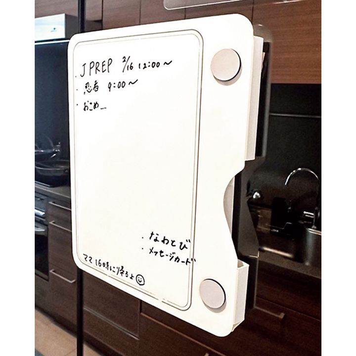 家族みんなが目にする場所だからすぐに確認できて便利な反面、見栄えも気になるし、たくさん貼りすぎてずり落ちてくるのもストレスに…。