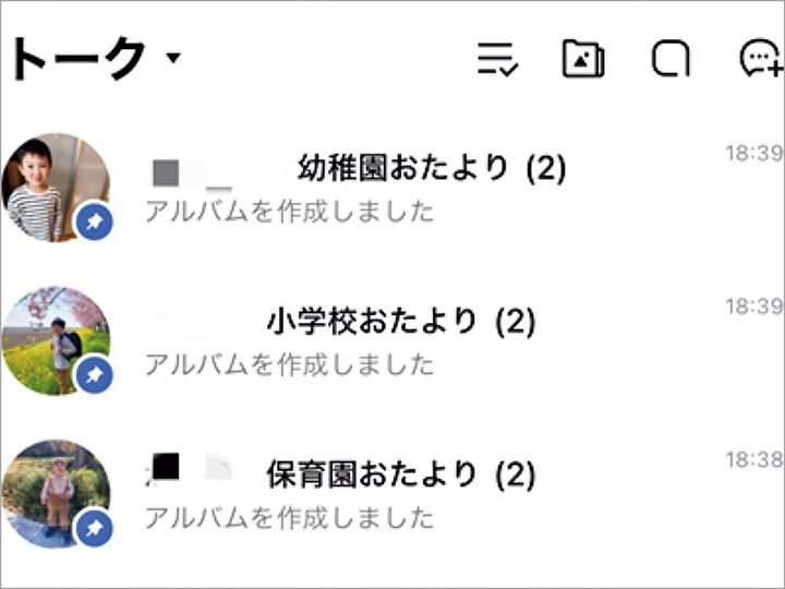 子どもごとに作成したトークグループをピン留めして、LINEを開けばすぐにプリントを確認できるようにしています。
