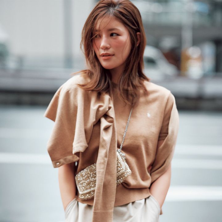 上品さと清潔感をキープできて、肌寒い日も気温の高い日も実は体温調節しやすい「ツインニット」が、ママに人気再燃の予感。今回は、自身もツインニット好きという咲和希さんが、お気に入りブランドで着こなしてくれました。