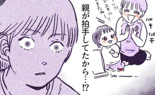 「拍手はこうするんだよ」と教えたわけでもないのに、親の行動をまねて初めての拍手をしたじーたんに、たろすさんは仕事が手に付かなくなるほど、感動したのでした。