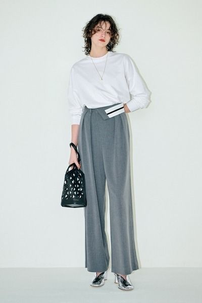 グレーパンツ/スナイデル(SNIDEL ルミネ新宿2店) ゆったりとしたワイドは特に、ベルト部分が締まって見えるディテールを意識。シルエットに抑揚がついてくびれがきわ立つから、気になる膨張感を自然と回避。今注目の折り返し風は、端正な装いのさりげないハズしとしても作用。