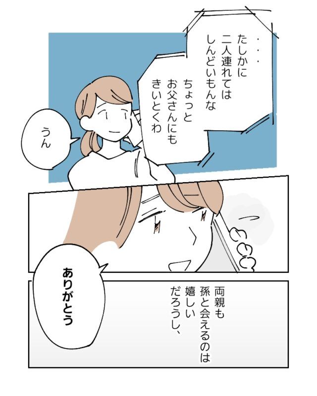「・・たしかに。2人連れてはしんどいもんな。ちょっとお父さんにもきいとくわ」