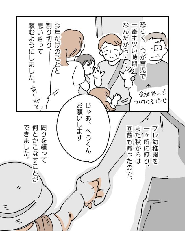 プレ幼稚園を1ヶ所に絞り、また秋からは回数も減ったので、周りを頼って何とかこなすことができました。