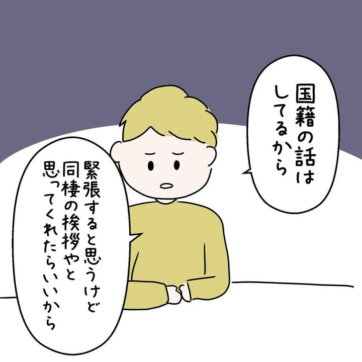 国籍の件は、恋人から両親に伝わっているという話ですが、なんだか少し不安なおとさん…。紹介される前日を迎えると、落ち着かず夜も眠れなくなってしまいました。これまで話に聞くばかりだった両親と、いよいよ明日は対面することになります。