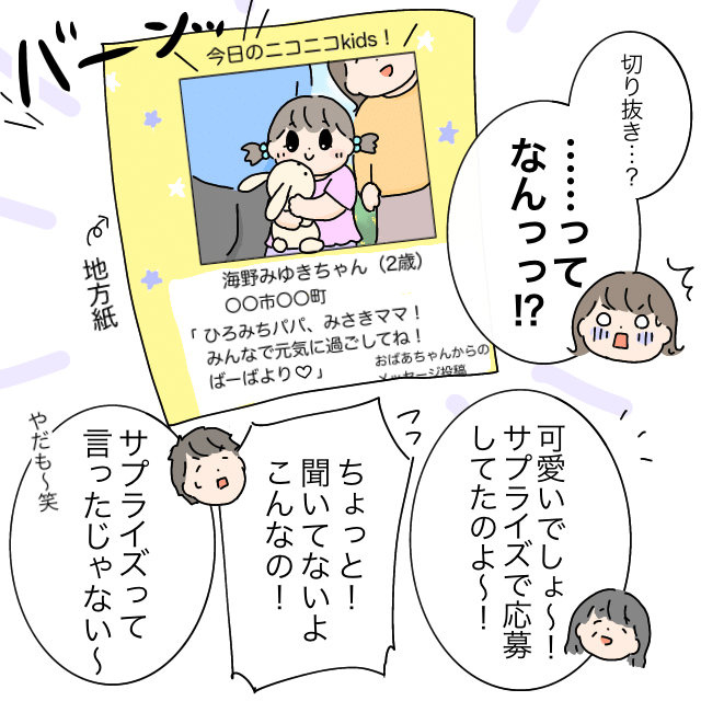 「サプライズ~!」渡されたのは地方紙の切り抜き。