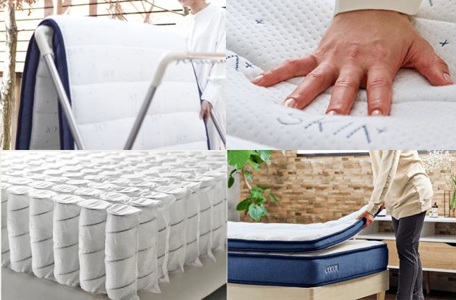 マットレスの詰め物には、消臭・抗菌・吸湿保温の効果がある素材が使用されています。“眠っている間にスキンケア”を謳う「SKIN+」という特許取得のプロバイオティックテクノロジーを用いたマットレス生地を使用しているのもポイントで、肌に触れる部分だからこそ徹底的にこだわった品質なのです。
