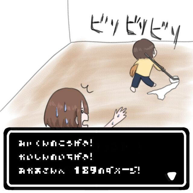 ちょ、ビリビリが張り付いてます・・お掃除ブームの2歳児としょんぼりの母|ねむりひつじの子育て絵日記
