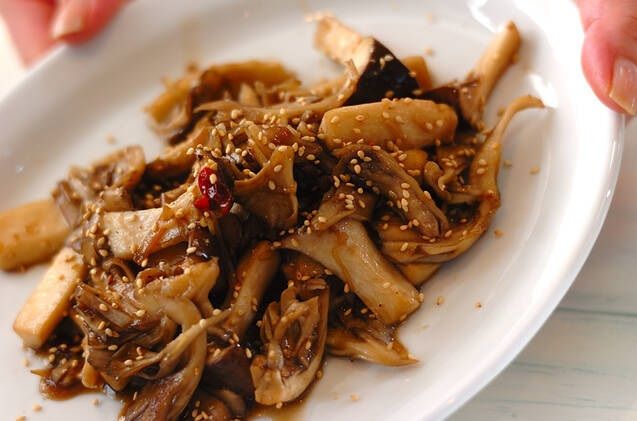 マイタケ、エリンギがあれば作れる!酒やしょうゆ、オイスターソースなどできんぴらにしました。お弁当に入っていたら、どんどんご飯すすむ味わいです。