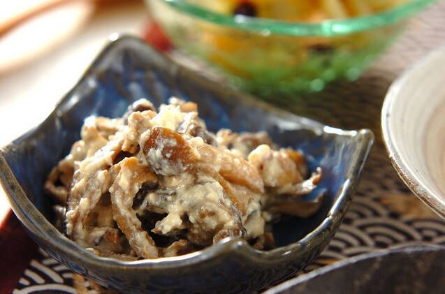 シメジ、マイタケ、シイタケを使ったキノコたっぷりの白和えです。冷蔵庫で3~4日ほどですが作り置ききますよ。しっかり味でご飯にも合うのでおうすすめです。