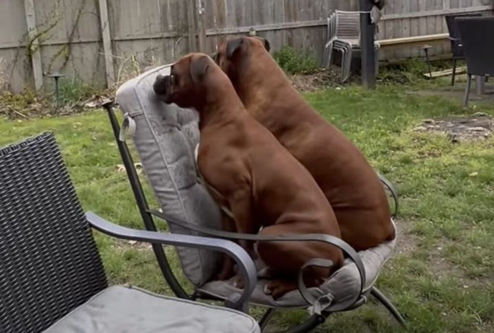3. 「絶対譲らない!」 頑固なボクサー犬、ギュウギュウなのに1つの椅子に