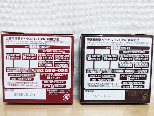 パッケージ裏面には災害伝言ダイアルの利用方法が記載されています。ミシン目入りの開け口は、ハサミなどが苦手なちょっと不器用さんな5歳でも開けられました。