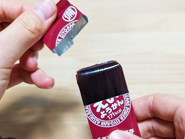 温度の関係か、チョコえいようかんの方が少しパッケージにくっついてちぎれそうになりました。