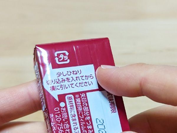 「少しひねり切り込みを入れてから横に引いて下さい」が少しわかりにくく、息子は自力で開けるのに苦戦していました。
