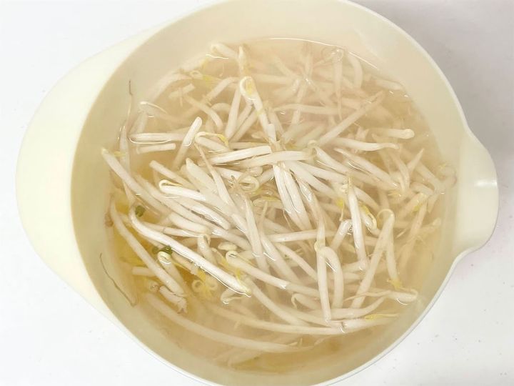 3.ボウルにもやしを入れて2の熱々の汁をかけ、粗熱を取ります。