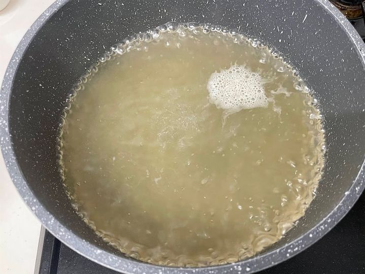 1.鍋に水、鶏ガラスープの素、塩小さじ1/2を入れて混ぜます。