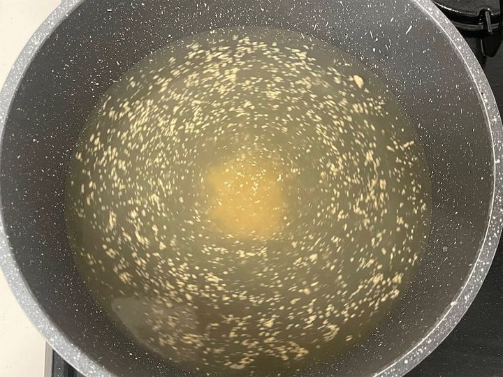 今回はゴマ油少量と白いりゴマ少量を入れてアレンジしました。