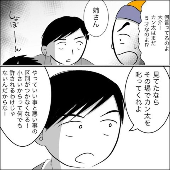 子どもは大人の様子をとてもよく見ています。母親のことで子どもが謝るなんて、悲しい場面ですよね。家族全体の関わりの中で、この甥っ子もまっすぐに育ってくれることを祈りたくなるシーンです。