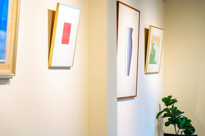 壁に飾られた絵は、オーナーと親交のあるバーのマスターのコレクション。ひとつひとつに味わいがあり、シンプルな空間のほどよいアクセントになっています。購入希望の場合は相談してみてください。