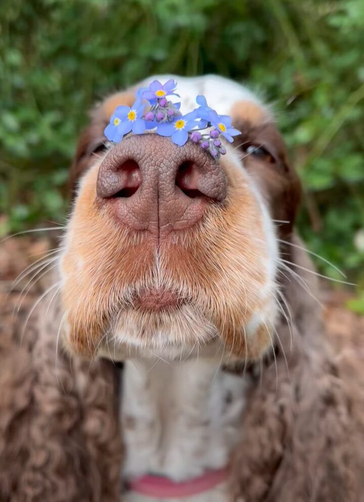 3. お鼻にお花。勿忘草を鼻に乗せてじっと動かない犬がかわいすぎる!!【海外・動画】