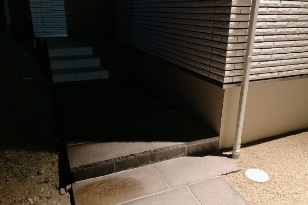 筆者宅は玄関から駐車場をつなぐアプローチに階段が数段あります。後悔しているのは、照明の位置が微妙で階段を照らしてくれない点です。