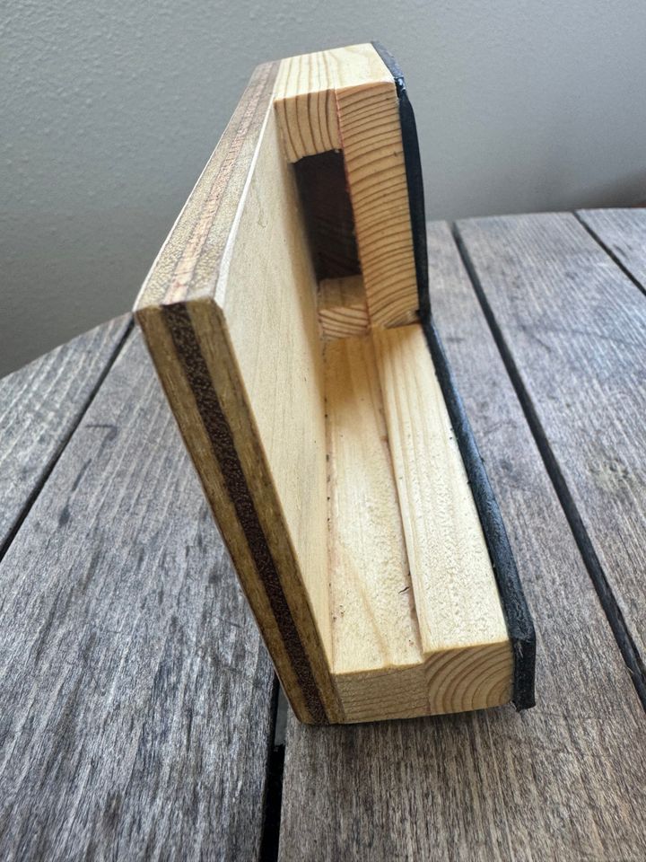 2枚目の木を少し削ってくぼみを作りました。これにより安定してスマホを置くことができます。