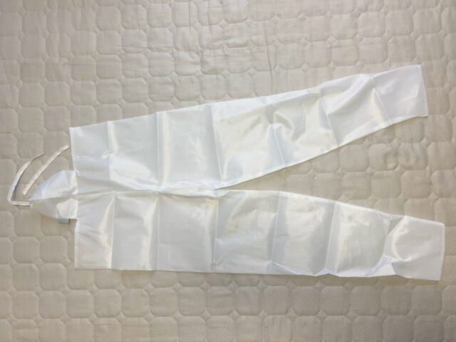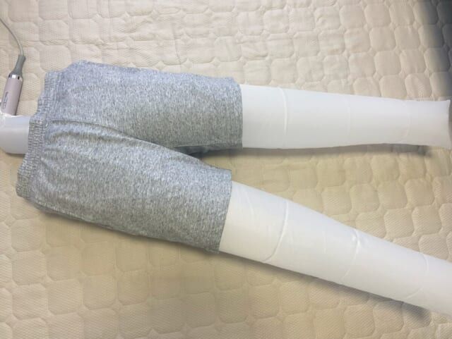 使用方法はトップス用と同じで、乾燥させたいボトムスを衣類乾燥袋に着せます。衣類乾燥袋のウエスト部分にある袋の口にドライヤーをセットする紐があるのでドライヤーを固定してセットします。