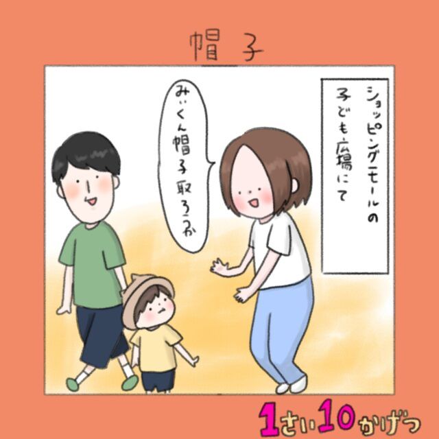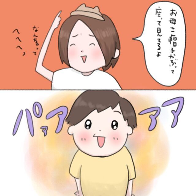 冗談でお母さん頭に帽子のせてるよ~って言っていたのですが、それがみぃくんには響いたようで・・・