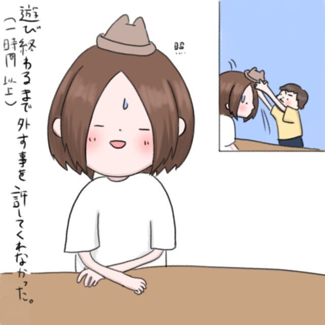 あはは!子どもって何が響くか本当にわかりませんね(笑)小さな帽子を頭に乗せて1時間以上・・・お疲れ様でした(笑)