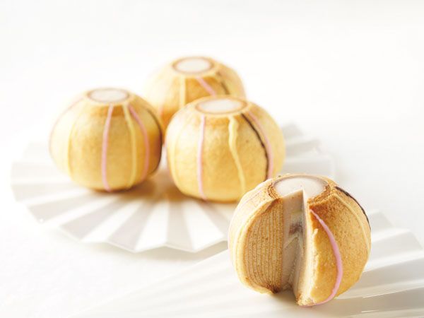 「信州の豊かな恵みをお福分け」をコンセプトに、信州産の米粉や卵など厳選した素材で手掛ける同店。コロンとした形もかわいらしい「ミニてまりん」は松本の工芸品「松本てまり」をモチーフに、てまりの模様をチョコレートで表現しています。米粉のバウムの中になめらかな舌触りの小布施の栗餡を詰めて仕上げた人気の看板商品です。
