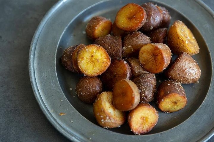 外がカリカリ、中がもっちりの秘密は、蒸したじゃがいもを冷凍して揚げているから。クミンや山椒をからめてもおいしい!